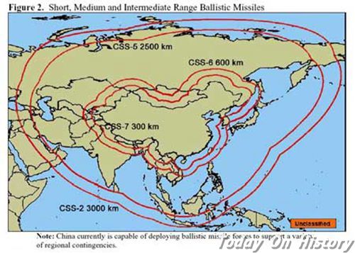 军力报告:中国中近程弹道导弹覆盖范围2007年5月25日,美国国防部向国会提交了年度《中国军力报告》。《中国军力报告》,英文全称为AnnualReporttoCongress:MilitaryPowerofthePeople'sRepublic
