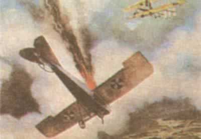 德国飞机在法国上空被击落5月25日,首批美制军用飞机在法国上空飞翔。这个小型空军中队的大多数飞机为『詹尼斯』,柯苇斯JN-4型,由原自行车技师格伦-柯苇斯设计。虽然这种飞机对欧洲上空是陌生的,但他们的驾驶员都