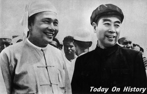吴努(左)和周恩来1907年5月25日,缅甸首任总理吴努出生。吴努(1907-1995),缅甸独立后首任总理。1907年5月25日生于缅甸渺咯县仰光大学毕业,1929年获文学士学位。1934年又回仰光大学学习法律,参加学生