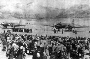 从北京飞来的试航飞机在拉萨机场降落,这是飞抵这个高原城市的第一只『神鹰』。1956年5月26日上午9时23分,第一架从北京飞往拉萨的领队运输机安全降落在拉萨附近的飞机场,北京至拉萨航线试航成功。以韩琳为机长的飞