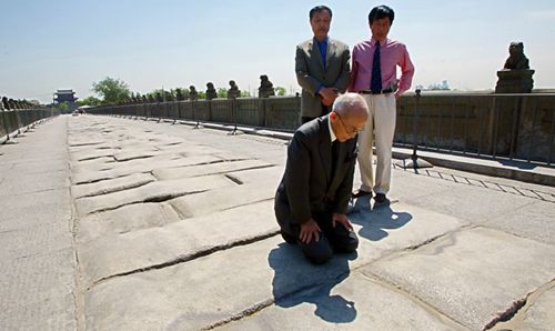 本多立太郎在卢沟桥上下跪谢罪2010年5月27日,日本侵华老兵本多立太郎逝世,曾三次来华谢罪。本多立太郎,1914年出生于北海道小撙市。1939年5月入伍,曾参加侵华战争。2010年病逝,享年96岁。1937年8月2