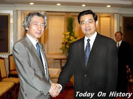 图:胡锦涛会见日本首相小泉纯一郎2003年5月31日,国家主席胡锦涛在莫斯科会见了日本首相小泉纯一郎。胡锦涛强调,中日两国领导人应从战略高度和长远角度来看待和处理两国关系,牢牢把握两国关系发展的大方