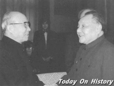 图:生前屈武(左)与邓小平著名的政治活动家、中国国民党革命委员会卓越领导人、中国人民政治协商会议第七届全国委员会副主席、中国国民党革命委员会名誉主席屈武同志,因病于1992年6月13日在北京逝世,终年94