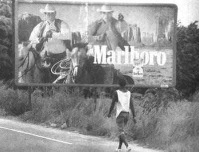 以Marlboro为首的公司大胆使用本地形象做广告1997年6月20日,美国菲里普-莫里斯等大烟草公司的代表与密西西比州司法部长穆尔及40个州的大律师在华盛顿花园凯悦饭店达成协议,在此后25年内,美国烟草公司将对美国因吸