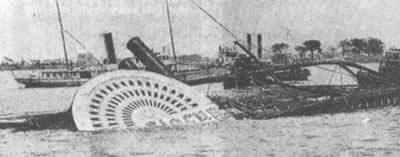 纽约港湾中的『斯洛克姆将军号』游船残骸1904年6月24日,当大火烧毁『斯洛克姆将军』号游船时,快乐的旅游变成了一场灭顶之灾。现场共发现693具尸体。据估计,死亡人数多达1000名,大多数死难者是妇女和儿童,他们是