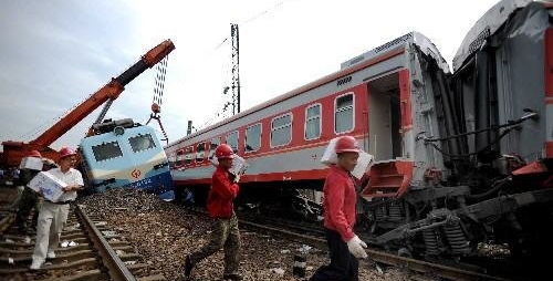 图:事故现场2009年6月29日2时34分许,湖南郴州火车站发生K9017次(长沙到深圳)客车与K9063次(铜仁到深圳西)客车相撞事故,造成3死60余伤。6月29日2时30分许,位于郴州城区中心的郴州市火车站。K9017次列车宛