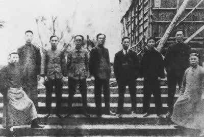1925年7月3日省港罢工委员会成立。图为部分委员合影,左5苏兆征,左6邓中夏为支援上海『五卅』反帝斗争,在中华全国总工会领导下,1925年6月19日,香港10余万工人举行大罢工,声明拥护上海工商学联合会提出的17项条