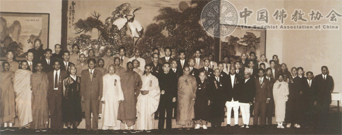 周恩来和佛教协会代表合影1953年5月30日到6月3日,中国佛教协会在北京广济寺举行成立大会,来自全国佛教界的120位著名人士出席了这次会议。代表们经过反复酝酿协商,确定中国佛教协会的宗旨是:团结全国佛教徒,在人