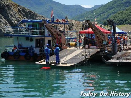 打捞搜救人员在现场作业2016年6月4日,四川广元白龙湖景区发生一起游船翻船事故。此次游船翻沉事故造成3人生还,15人遇难。在四川广元白龙湖游船翻沉事故现场,交通运输部烟台打捞局搜救潜水员成功打捞出翻