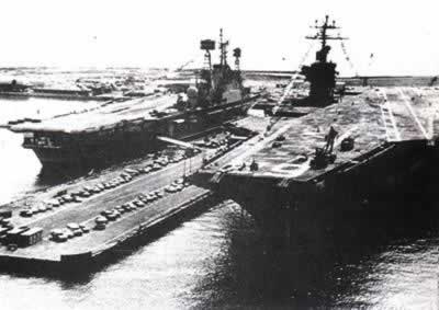 停泊在军港内的美国『企业号』航母1942年6月4日(东京时间6月5日),日美海、空军在中途岛展开激战。4月从美国航空母舰『大黄蜂号』上起飞的16架舰载机空袭东京等地,日本举国震动。5月初大本营决定进攻中途岛,歼灭