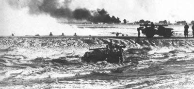 以色列军队迫近苏伊士运河以色列在美国支持下,于1948年、1956年两次对阿拉伯国家进行侵略战争。1967年6月5日上午以色列再次向埃及发动全面侵略,对埃及进行大规模的空中和地面袭击。第三次中东战争全面爆发。埃及