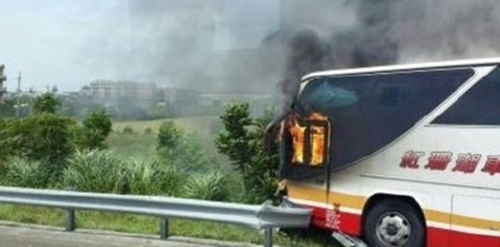 游览车起火今天中午12时57分,台湾桃园机场联络道发生自撞车祸。一辆游览车因不明原因撞上护栏,整辆车随即起火燃烧,司机逃生。火势在13点21分扑灭,已发现多具遗体,目前救援人员仍在现场抢救中。14:35分