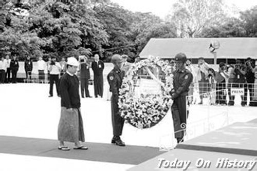 烈士节1947年7月19日,就在缅甸从英国殖民统治下获得独立前夕,昂山将军遭到英国唆使歹徒的枪击,遇害时年仅32岁。昂山将军是缅甸现代史上一位杰出的政治领袖和民族英雄,为缅甸的独立和解放做出了卓越的贡献,