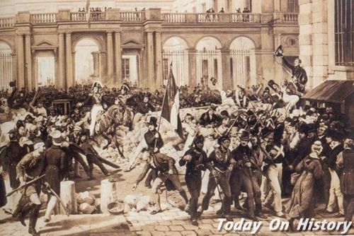 法国七月革命爆发七月革命是指拿破仑在滑铁卢惨败之后,1830年7月法国推翻复辟波旁王朝,拥戴路易·菲利浦登上王位的革命。建立的新王朝也就是『七月王朝』。法国七月革命,是1830年欧洲的革命浪潮的