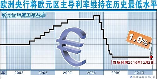 柏林2010年7月8日电欧洲中央银行8日在法兰克福总部宣布,将欧元区16国主导利率维持在1.0%不变。自2009年5月以来,欧洲央行一直将欧元区主导利率维持在这一历史最低水平。欧洲央行行长特里谢在月度新闻发布会上暗示,