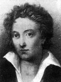雪莱像雪莱(1792年—1822年)生于古老贵族家庭。自幼富于反抗精神,受卢梭、葛德文思想影响。因此发表小册子《无神论的必然性》(1811年)被牛津大学开除。1812年到爱尔兰去支持人民斗争,发表演说,散发《告