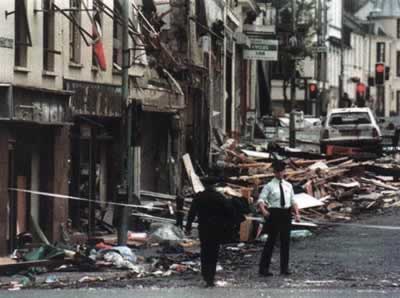 北爱尔兰奥马爆炸事件现场。由于信息有误,警方在引导市民撤离时,反而靠近了爆炸地点北爱尔兰中部城镇奥马市中心1998年8月15日发生一起汽车炸弹爆炸事件。这是北爱自1979年爱尔兰共和军炸死13名英国士兵以来最严
