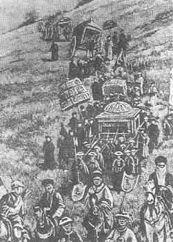 匆忙出逃的慈禧太后的车驾仪仗1900年8月14日,慈禧接连5次召见军机王大臣等,决定『出京』作『暂避之计』。王文韶当日记道:『我蒙召见五次,至刻刻召,仅有刚、赵二人同在,太后云:只剩你三人,务须随驾,其余之