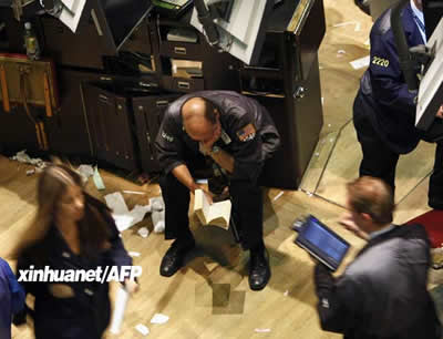 2007年8月16日,交易员在美国纽约证券交易所内忙碌。由于信贷危机引发投资者恐慌情绪,纽约股市16日大幅振荡。8月9日,美国联邦储备委员会向金融市场注资240亿美元,以应付次级住房抵押贷款市场危机造成的冲击。此后