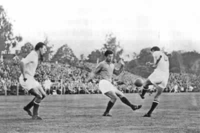 1958年世界杯,法国对南斯拉夫一战,方丹攻入2球1958年,巴西首夺世界杯足球赛冠军,一代球王贝利和魔王加林查首次在世界足坛逞威,给人们留下极为深刻的印象。而法国著名中锋朱斯特-方丹却以进13球的战绩不仅荣获