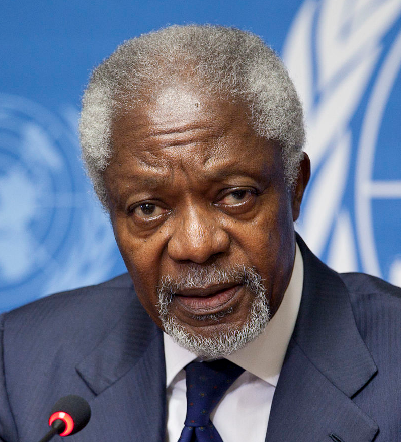 科菲·安南:(KofiAttaAnnan,1938年4月8日-2018年8月18日),加纳库马西人,联合国第七任秘书长。科菲·安南:1972年毕业于麻省理工学院,通晓英语、法语及非洲多种语言。1997年至2006年,安南连任两届联合国秘书