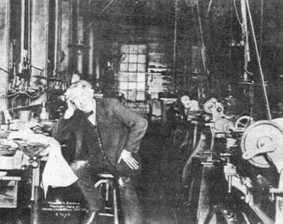 爱迪生在实验室里小憩1910年8月27日,托马斯-阿尔瓦-爱迪生宣布了他的最新一项发明:有声电影。一些经过挑选的观众被邀请到新泽西州西奥兰治的爱迪生实验室,观看把留声机的声音和电影摄影机上的图像联系起来的电影