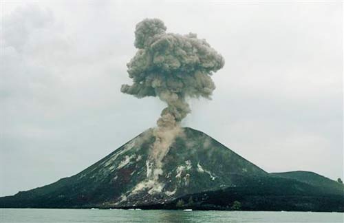 位于苏门答腊岛南部与爪哇岛之间海域的喀拉喀托火山,不断喷出火山灰和蒸汽1883年8月27日,著名的喀拉喀托火山喷了3次。其中第三次喷发发生了剧烈的爆炸,使整个地区充满了尘土、碎石和有毒气体,天空一片漆黑