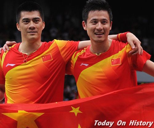男双伦敦奥运会羽毛球收官日,压轴的男双决赛,风云组合蔡赟/傅海峰对阵丹麦组合摩根森/鲍伊,结果风云组合直落两局以21-16和21-15获胜,拿下男双冠军,中国羽毛球队首次包揽奥运会全部五金。伦敦奥运会,羽