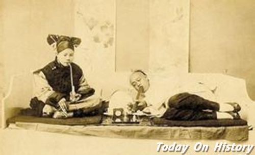 吸食鸦片嘉庆十八年(1813)8月5日,清政府规定:侍卫官员买食鸦片烟的,革职杖一百,加枷号两个月;军民人等杖一百,枷号一个月。对此,嘉庆帝颁发谕旨说:近来侍卫官员中,风闻有违禁买食鸦片的,因事未发