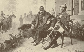 拿破仑三世在色当会战被俘与普鲁士首相奥托·冯·俾斯麦对话路易·波拿巴(拿破仑的侄儿,即拿破仑三世)建立起法兰西第二帝国,当上法国皇帝后,对内实行封建专制,对外发动扩张战争,妄想称
