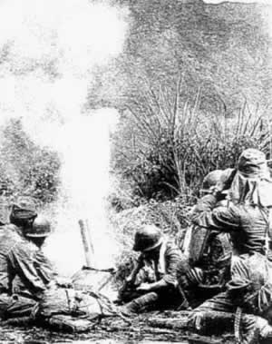 向中国军队轰击的日军炮兵阵地1944年9月2日,日军冈村宁次指挥10个师团、3个旅团约15万兵力,向广西进攻。这是日军为打通大陆交通线,援救陷入南洋的孤军,完成其『1号作战』的第三步。前两步为『河南战役』和『长衡