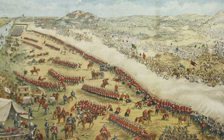 1898年9月2日,恩图曼会战爆发。英国和埃及军队(8200名英军、17600名埃军)依托工事,并发挥机枪的威力,击败5.2万苏丹马赫迪军。马赫迪军阵亡近万人,1.3万人受伤,5千人被俘,英埃军队仅阵亡48人。&nbs