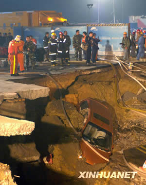 11月15日下午15时20分左右,浙江杭州市风情大道地铁一号线施工现场发生坍塌事故,风情大道塌下去100多米长,塌陷深度20米左右,导致河水倒灌。多名工人被压在坍塌的坑道中。有关专家称,这起地铁塌陷事故是中国地铁修建史上最大事故。