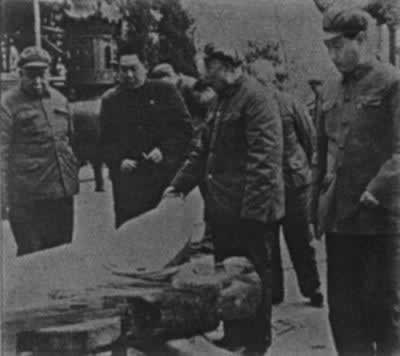 张玉琦同志(右一)接待前来检查指导重修工作的地委、行署领导