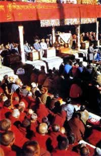 受戒后的第十一世班禅首次为扎寺僧众领诵经文
