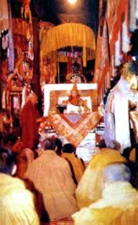 下午4时,在拉萨班禅大师的行宫雪林多吉颇章,举行了册立第十一世班禅额尔德尼典礼。