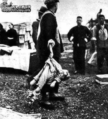 这个惨无人道的日本军官在杀死人后,提着一个砍掉的脑袋的耳朵,洋洋得意地照相呐喊中的婴儿《往事》南京大屠杀1937年12月13日,日本侵略军占领南京。在华中派遣军司令官松井石根和第六师团长谷寿夫的指