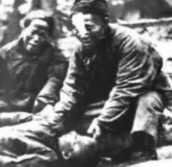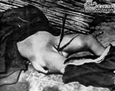 尸体掩埋队拾起一个被灭绝人性的日本士兵杀死的幼儿的尸体