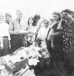 23日是举行合葬仪式的日子。当谢胡的棺椁被抬下汽车的时候,墓地里已经聚集了上百名送葬者,其中不少是谢胡的亲属。为了参加葬礼,许多人很早就从谢胡的家乡马拉卡斯特拉区赶来。斯坎德尔在仪式上宣读了悼词,也许是心情过于沉重,也许是想到寻找父亲的艰辛,他的声音不住地发颤,一些妇女则忍不住抽泣起来,现场气氛十分压抑。