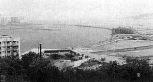 从西望洋山顶看围海而成的南湾,右侧工地上将建起高339米,位居世界第八位的澳门电读塔。