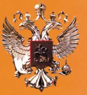 俄罗斯国徽,振翅欲起的双头鹰掌握着金球与权杖