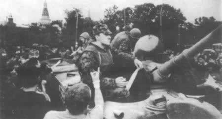 叶利钦站在被包围的俄罗斯议会大厦,即『白宫』外面一辆坦克顶上的演说令人难忘