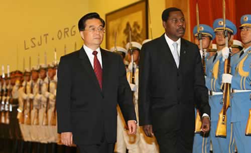 2006年8月28日,国家主席胡锦涛在北京人民大会堂北大厅举行仪式,欢迎贝宁总统亚伊访华。