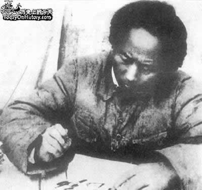 毛泽东在为陕甘宁边区工农业生产成绩展览会写『自己动手』、『丰衣足食』的题词