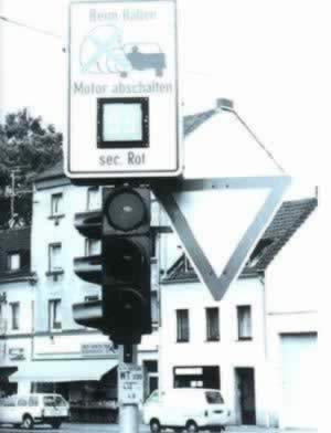 德国城市的环保交通灯提醒司机在等候时关闭发动机,以减少废气排放量