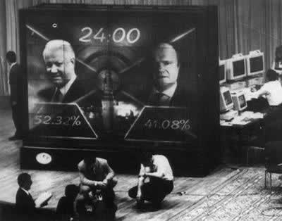 1996年叶利钦再次竞选成功,图为在第二轮选举即将结束之时