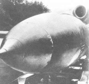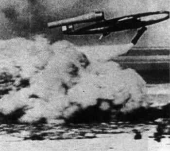 1944年6月12日,由德国研究成功的世界上第一种导弹---V-1导弹正式投入实战。 由保罗-施密特于1928年开创的对间歇喷射引擎的研究最终使AS 109-014引擎得以问世。这种引擎被用作Fi 103(也称V-1或FZG 76)的推进器。这是最早投入实用的巡航导弹。Fi 103就是一架小型飞机,其翼展依不同型号为5.3米或4.87米,由一具间歇喷射引擎推动。为了达到引擎的工作速度,Fi 103须由长斜角发射架或飞机携带发射,其航线由罗盘控制,飞行距离则由一个小推进器调节。飞临目标上空时,V-1改以急速俯冲的方式飞行。这一加速过程将导致推进器停机。这对攻击效果有很大影响,因此后来的V-1都被改装以防止这种情况发生。V-1的飞行高度比较低,速度不够快,最快的盟军战斗机就能拦截它,因此对其进行有效的防御是完全可能的。伦敦被2418枚V-1击中,落在安特卫普则有2448枚。