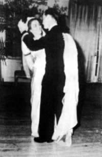 1945年1月6日,布什在与芭芭拉举行的婚礼晚会上,陶醉于幸福之中。
