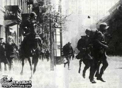 毕苏斯基的部队接管政权,华沙街上行人匆忙躲避