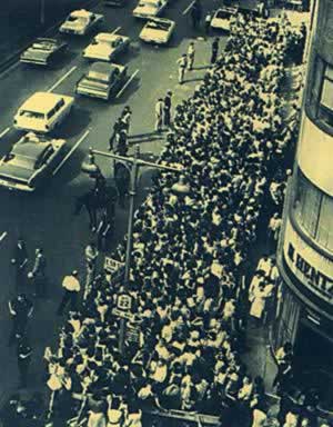 守候在纽约街头,等候着甲壳虫乐队的车子经过的歌迷